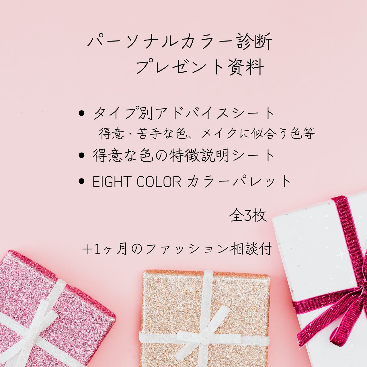 内容:カウンセリング、ドレープ診断、EIGHT COLORタイプ判定、ベストカラー選定、個別解説